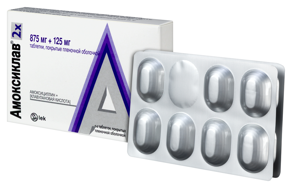 - Состав1 таблетка, покрытая пленочной оболочкой, 875 мг + 125 мг содержит: ядро таблетки: действующие вещества: амоксициллина тригидрат - 1004,4 мг (соответствует амоксициллину - 875,0 мг), калия клавуланат - 148,9 мг (соответствует клавулановой кислоте - 125,0 мг); вспомогательные вещества: кремния диоксид коллоидный безводный - 3,5 мг, кросповидон - 250,0 мг, повидон К25 - 26,3 мг, магния стеарат - 10,5 мг, тальк - 14,9 мг, микрокристаллическая целлюлоза - 194,8 мг; пленочная оболочка: гипромеллоза - 6,3 мг, этилцеллюлоза, водная дисперсия - 21,1 мг, триэтилцитрат - 1,4 мг, титана диоксид - 11,3 мг, тальк - 9,9 мг.