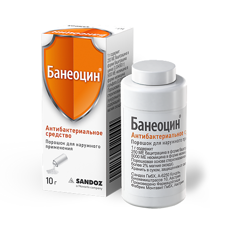 Порошок Банеоцин® показан для применения при инфекциях, вызванных микроорганизмами, чувствительными к неомицину и/или бацитрацину.