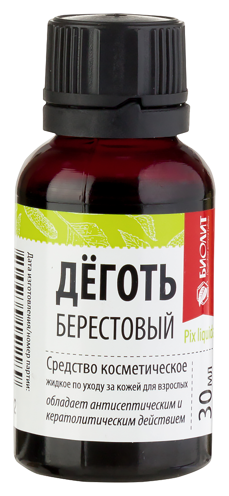 Дёготь берестовый обладает кератолитическим (отшелушивающим), антисептическим, подсушивающим, противовоспалительным действием.