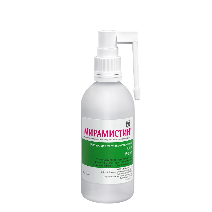 - Особые указанияПеред применением препарата Мирамистин® проконсультируйтесь с лечащим врачом, работником аптеки или медицинской сестрой. Пользование одним флаконом препарата более чем одним лицом может привести к распространению инфекции.