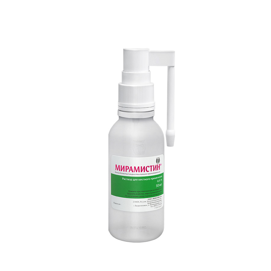 - Особые указанияПеред применением препарата Мирамистин® проконсультируйтесь с лечащим врачом, работником аптеки или медицинской сестрой. Пользование одним флаконом препарата более чем одним лицом может привести к распространению инфекции.