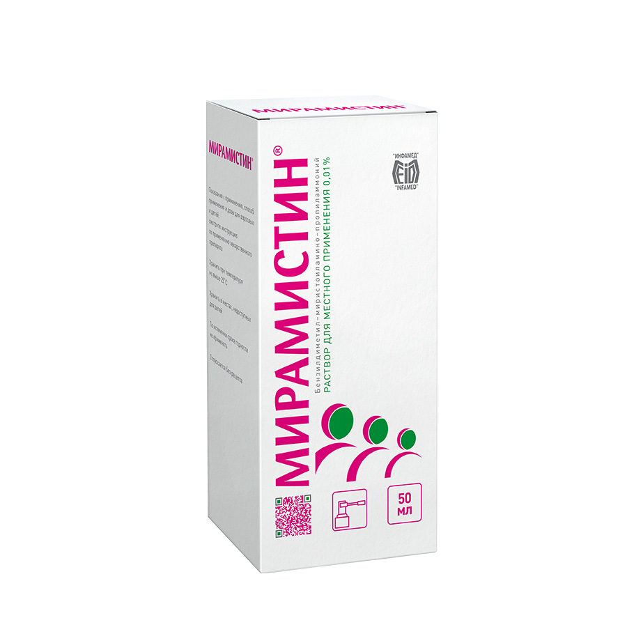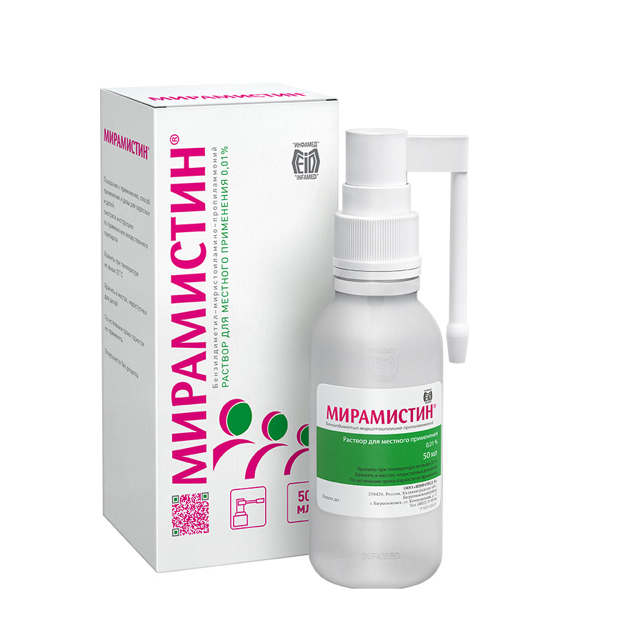 - ПоказанияПрепарат Мирамистин® применяется у взрослых и детей: • в оториноларингологии (заболевания уха, горла и носа): для комплексного лечения острого и хронического наружного отита, гайморита, тонзиллита, фарингита, ларингита; • в стоматологии (заболевания зубов, десен и ротовой полости в целом): для лечения и профилактики инфекционно-воспалительных заболеваний полости рта (стоматиты, гингивиты, пародонтиты), гигиенической обработки съемных протезов; • в хирургии, травматологии: для профилактики нагноений и лечения гнойных ран, лечения гнойно-воспалительных процессов опорно-двигательного аппарата; • в акушерстве, гинекологии: для профилактики и лечения нагноений послеродовых травм, ран промежности и влагалища, послеродовых инфекций, воспалительных заболеваний (вульвовагинита); • в комбустиологии (ожоговые поражения): для лечения поверхностных и глубоких ожогов II и IIIA степени, подготовки ожоговых ран к дерматопластике (пластическим операциям, например пересадке кожи); • в дерматологии (бактериальные и грибковые кожные инфекции): для лечения и профилактики пиодермий и дерматомикозов, микозов стоп, кандидозов кожи и слизистых оболочек; • в венерологии: для индивидуальной профилактики заболеваний, передающихся половым путем (сифилис, гонорея, хламидиоз, трихомониаз, генитальный герпес, генитальный кандидоз); • в урологии (заболевания мочеполовой системы): для комплексного лечения острых и хронических уретритов и уретропростатитов специфического (хламидиоз, трихомониаз, гонорея) и неспецифического происхождения.