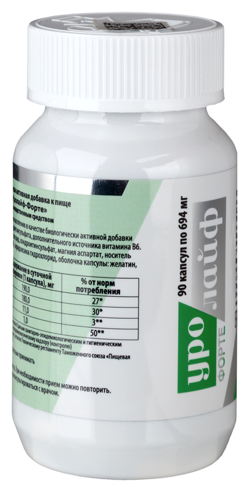 • Повышенная (по сравнению с капсулами УРОЛАЙФ) доза хондроитинсульфата. Хондроитинсульфат предназначен для так называемой пероральной гликозаминогликанзаместительной терапии, т.е. восстановления защитного слоя мочевого пузыря. Кроме того, хондроитинсульфат снижает чувствительность болевых рецепторов в мочевом пузыре.