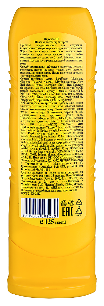 Floresan Молочко автозагар экспресс формула 110.