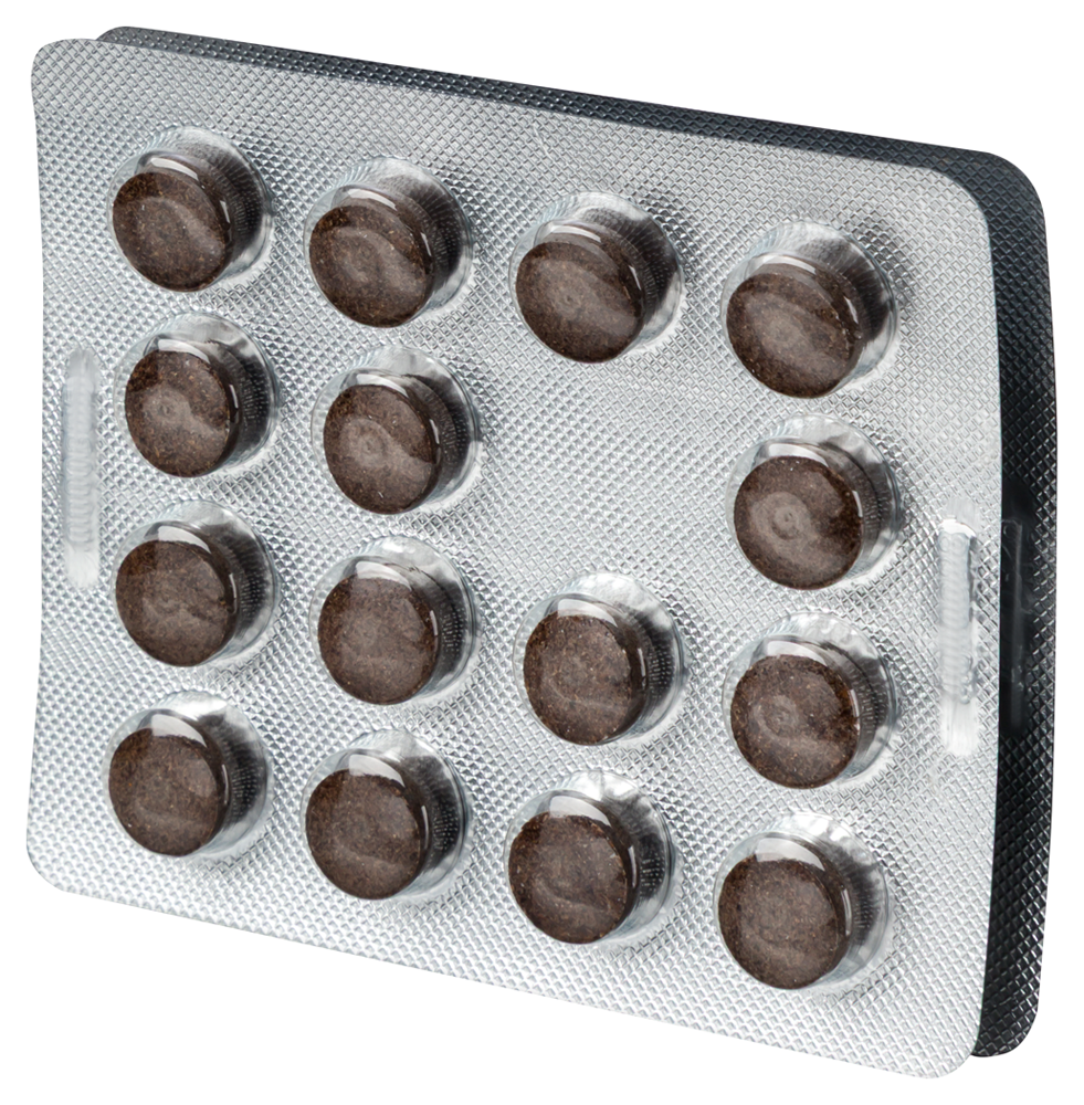 Внешний вид и свойства: Таблетки круглые, двояковыпуклой или плоскоцилиндрической формы. Цвет таблеток серо-бежевый с темными и светлыми вкраплениями, допускается мраморность.