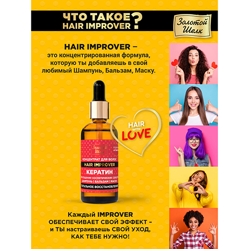 Линия Hair Improver - концентраты для волос (улучшители) позволяют повысить эффективность шампуня, бальзама или маски до максимума. Комбинируйте их с любыми продуктами, смешивайте между собой - создайте средство, которое подходит именно вам!
