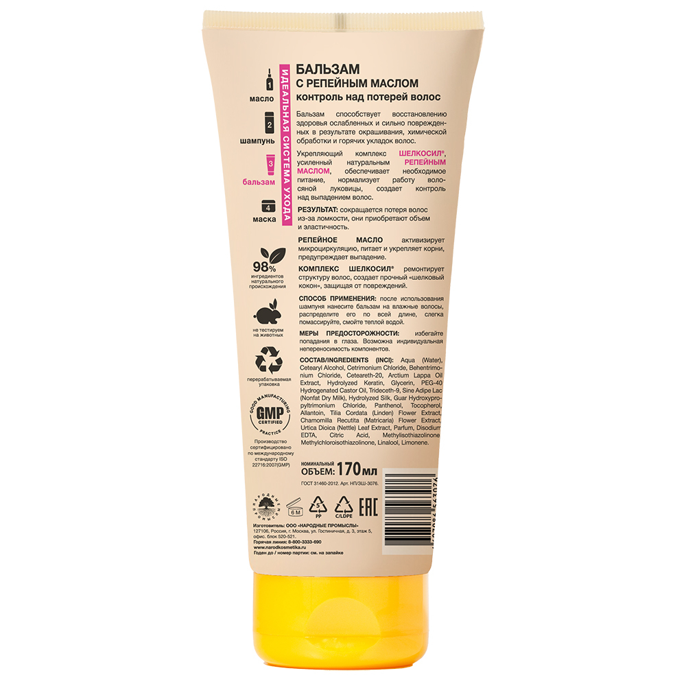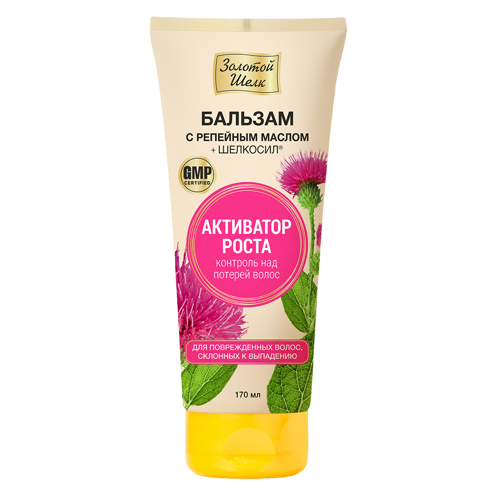 ЗОЛОТОЙ ШЕЛК БАЛЬЗАМ КОНТРОЛЬ НАД ПОТЕРЕЙ ВОЛОС С РЕПЕЙНЫМ МАСЛОМ - для сухих, поврежденных и ослабленных волос.