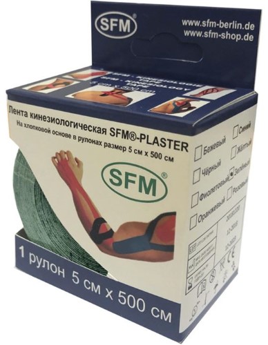 ЛЕНТА КИНЕЗИОЛОГИЧЕСКАЯ SFM-PLASTER НА ХЛОПК ОСНОВЕ В РУЛОНЕ 5Х500СМ - представляет собой эластичную хлопковую ленту на клейкой гипоаллергенной основе.