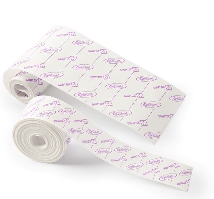 БИНТЛИ-М очень мягкий гипоаллергенный фиксирующий липкий бинт, обладает большой степенью драпируемости, что делает его очень удобным для фиксации повязок на поверхностях со сложным рельефом, локтевых, коленных суставах и т.п