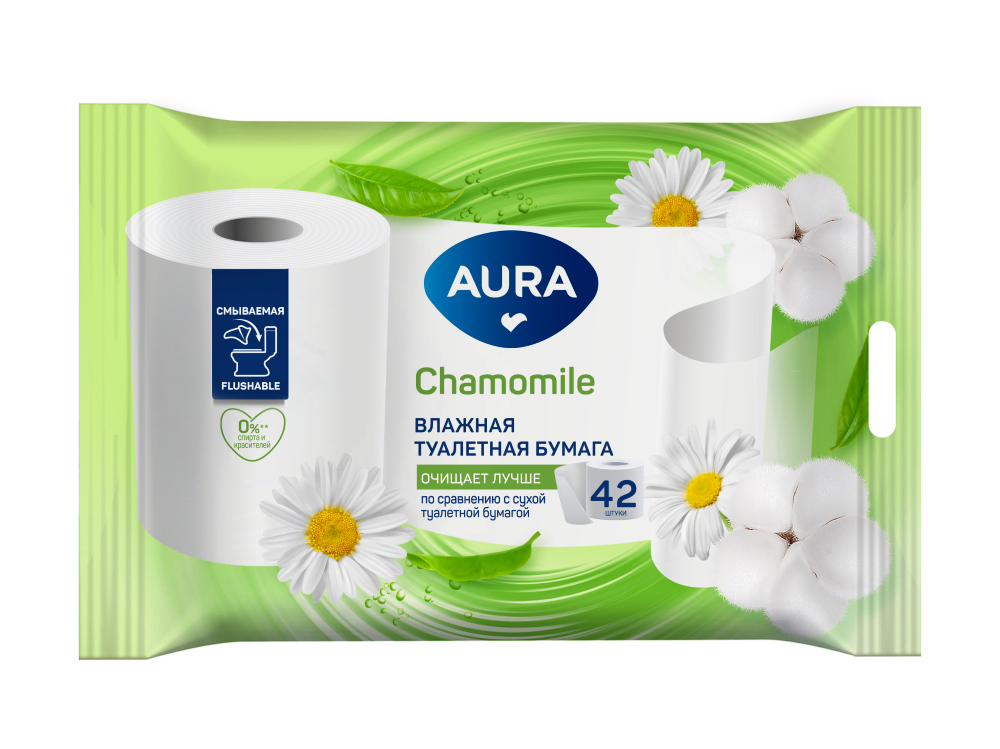 Влажная туалетная бумага AURA с ромашкой идеальна для всей семьи
