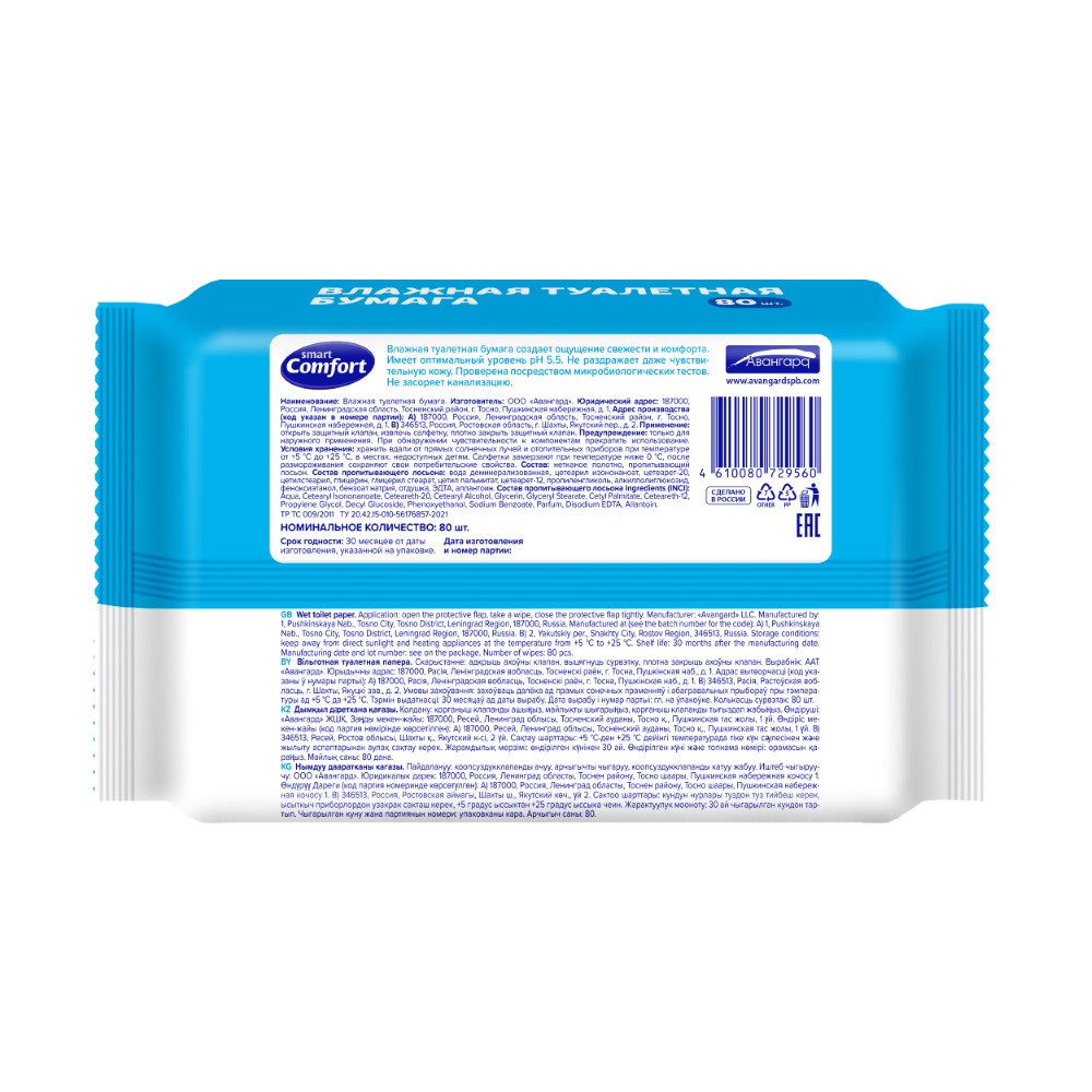 Влажная туалетная бумага Smart Comfort - это особый вид туалетной бумаги, который производится из специального биоразлагаемого материала, пропитанного увлажняющим лосьоном.