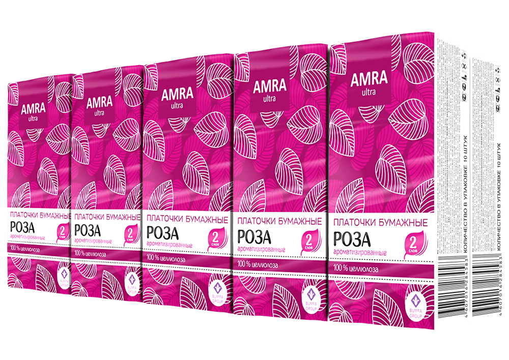 Платочки бумажные с ароматом розы изготовлены из 100% целлюлозы