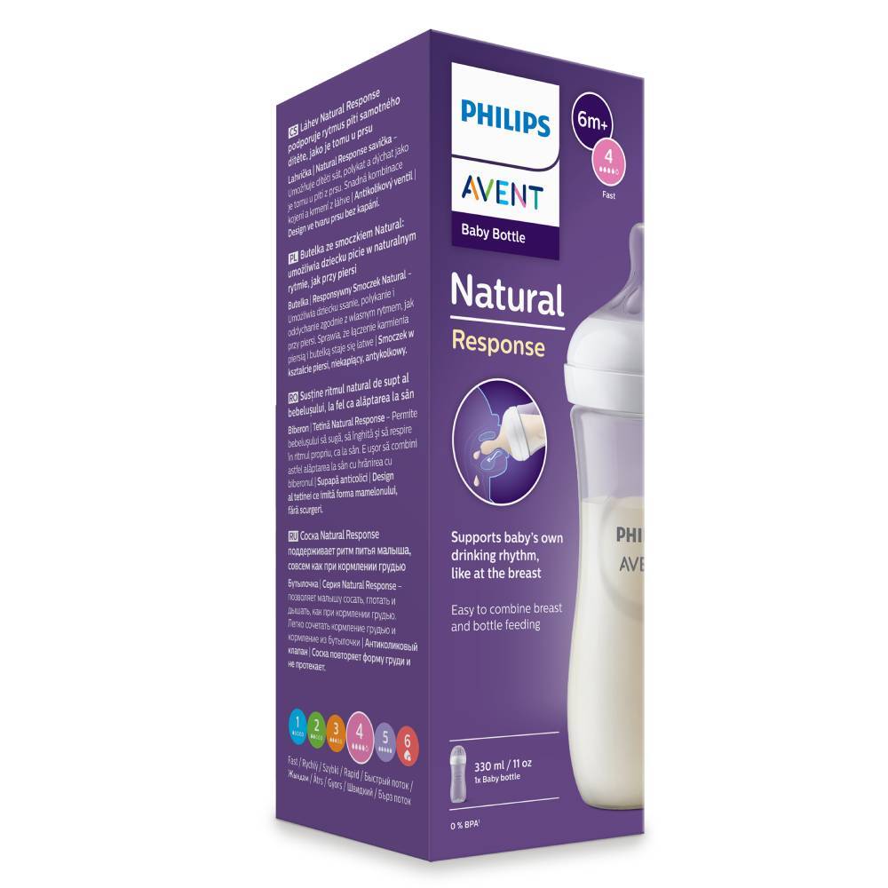 Наши бутылочки Natural Response отличаются от предыдущих серий конструкцией соски. Как и с кормлением грудью, вам может потребоваться несколько дней, чтобы приспособиться к ней. Это нормально.