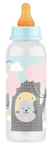 Бутылочка для кормления со стандартным (узким) горлышком оснащена латексной молочной соской медленного потока.