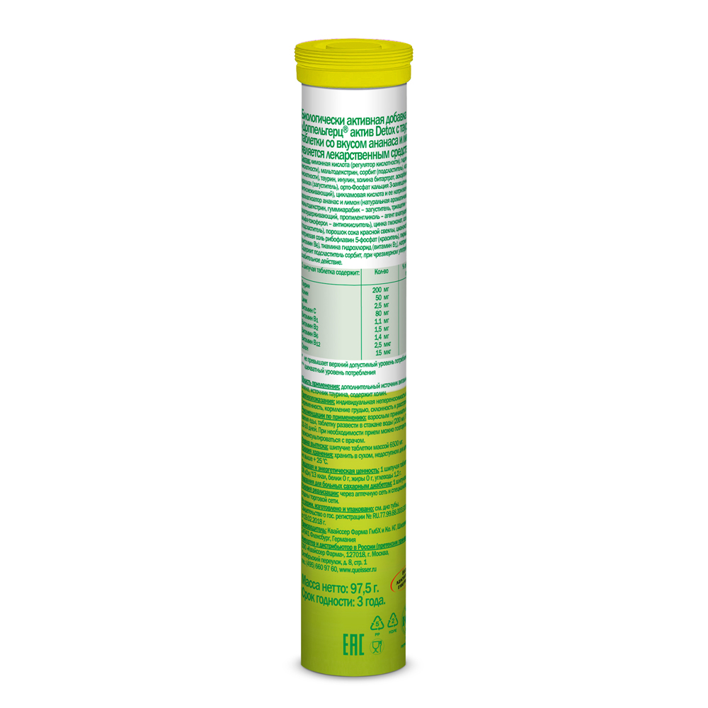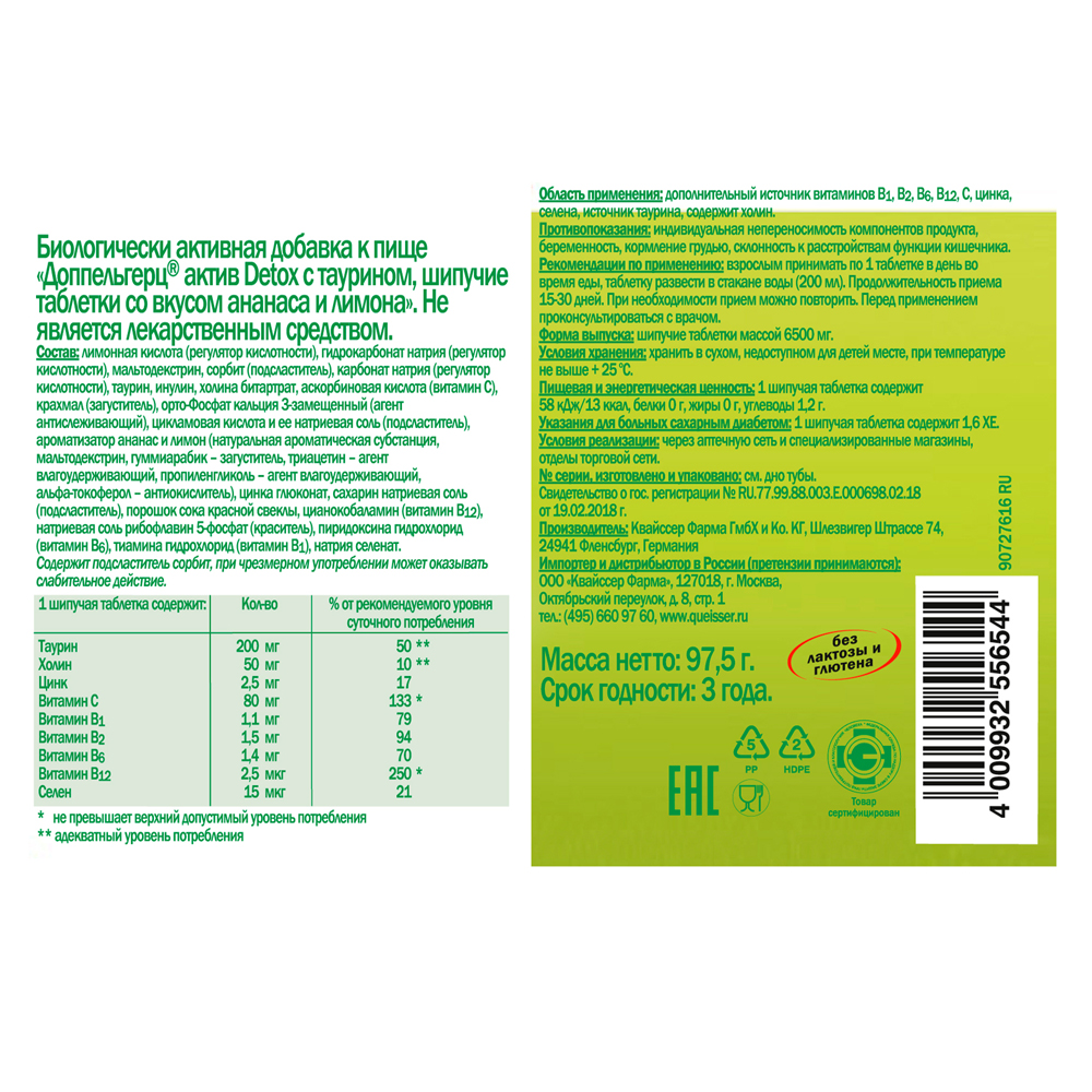 ДОППЕЛЬГЕРЦ АКТИВ DETOX С ТАУРИНОМ ШИПУЧИЕ ТАБЛЕТКИ СО ВКУСОМ АНАНАС/ЛИМОН-