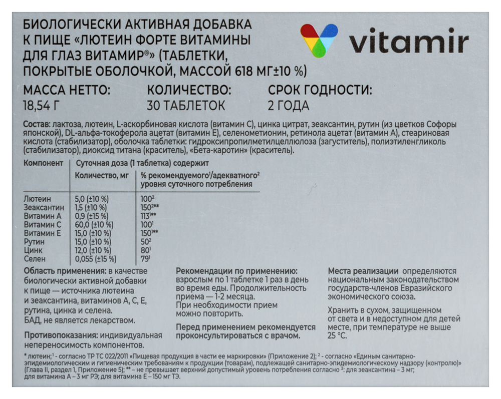 • Защите зрения от возрастных изменений