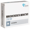 - Состав1 таблетка содержит: Действующее вещество: микофенолата мофетил - 250,000 мг. Вспомогательные вещества: целлюлоза микрокристаллическая (МКЦ-101) - 43,700 мг; повидон-К25 - 19,800 мг; кроскармеллоза натрия - 13,200 мг; магния стеарат - 3,300 мг. Состав оболочки: поливиниловый спирт - 4,000 мг; титана диоксид - 3,562 мг, макрогол-4000 - 2,438 мг.