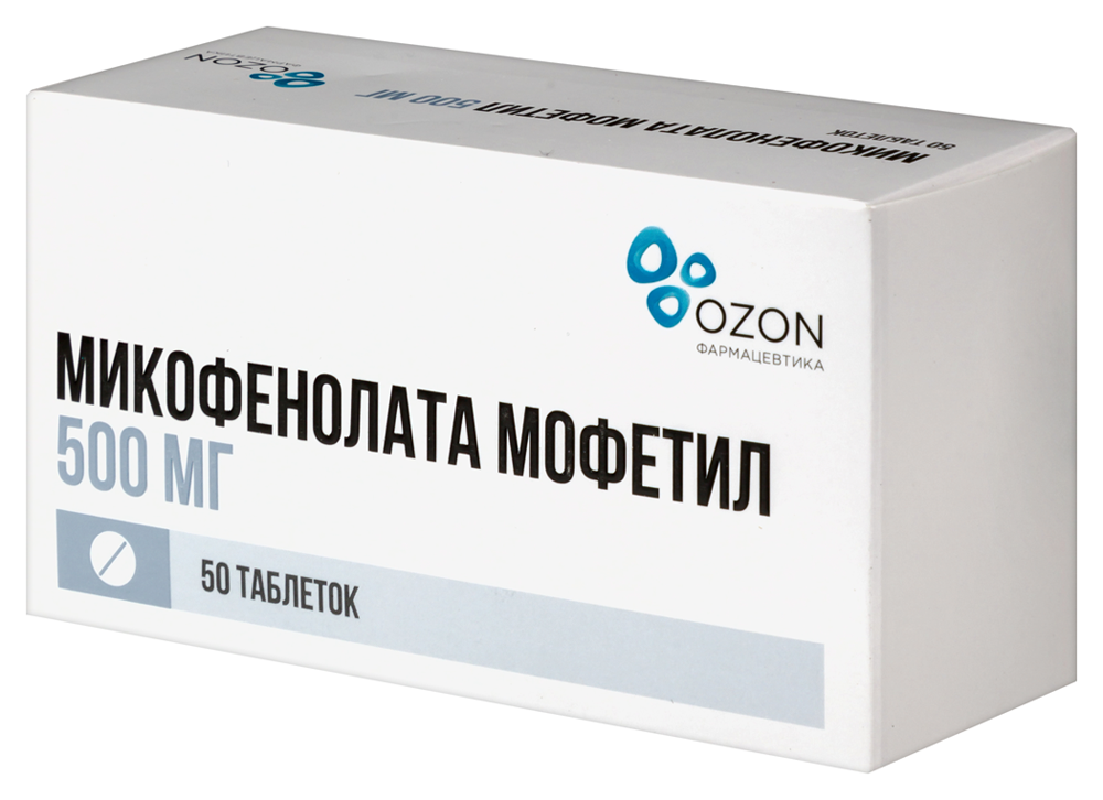 - Состав1 таблетка содержит: Действующее вещество: микофенолата мофетил - 500,000 мг. Вспомогательные вещества: целлюлоза микрокристаллическая (МКЦ-101) - 87,400 мг; повидон-К25 - 39,600 мг; кроскармеллоза натрия - 26,400 мг; магния стеарат - 6,600 мг. Состав оболочки: поливиниловый спирт - 8,000 мг; титана диоксид - 7,124 мг, макрогол-4000 - 4,876 мг.