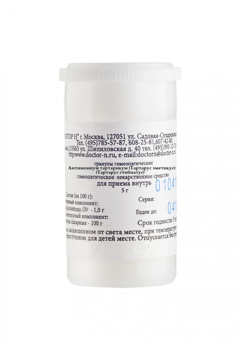 - Antimonium tartaricum /Tartarus emeticus/ /Tartarus stibiatus/ (Антимониум тартарикум /Тартарус эметикус/Тартарус стибиатус/ ) C30 - 1,0 г