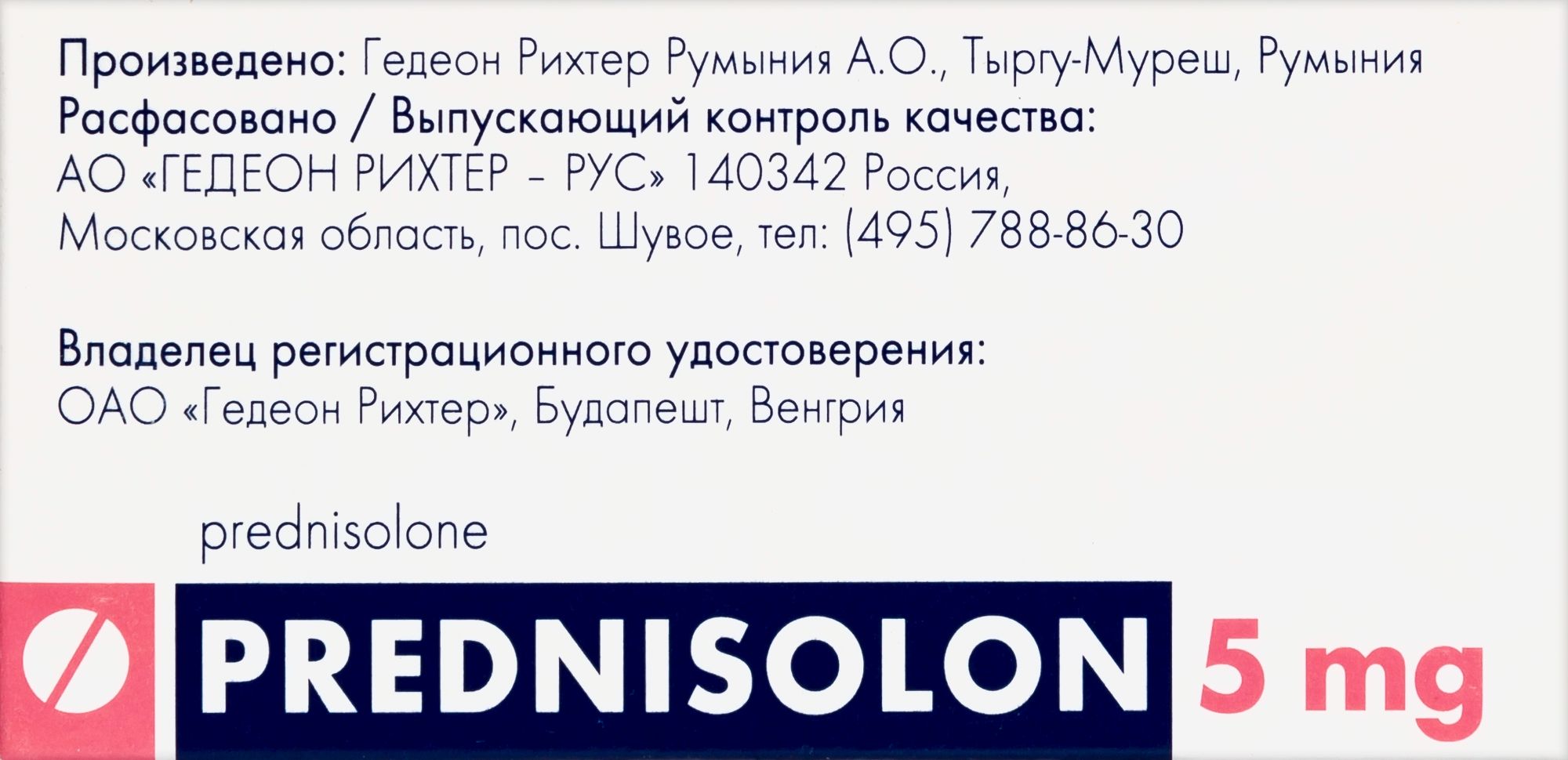 - Способ применения и дозыВнутрь, запивая небольшим количеством воды. Доза препарата и продолжительность лечения устанавливаются врачом индивидуально в зависимости от показаний и тяжести заболевания. Подбор дозы и длительности лечения определяется в зависимости от индивидуального ответа на терапию. Всю суточную дозу препарата рекомендуется принимать однократно или двойную суточную дозу - через день с учетом циркадного ритма эндогенной секреции ГКС в интервале от 6 до 8 часов утра. Суточную дозу препарата Преднизолон следует принимать после еды (завтрака). Высокую суточную дозу можно распределить на 2‒4 приема, при этом по утрам следует принимать большую дозу. При острых состояниях и в качестве заместительной терапии взрослым назначают в начальной дозе 20‒30 мг/сут, поддерживающая доза составляет 5‒10 мг/сут. При необходимости начальная доза может составить 15-100 мг/сут, поддерживающая 5‒15 мг/сут. Для детей от 3 лет и старше начальная доза составляет 1‒2 мг/кг массы тела в сутки в 4‒6 приемов, поддерживающая ‒ 0,3‒0,6 мг/кг/сутки. При получении терапевтического эффекта дозу постепенно снижают по 5 мг, затем по 2,5 мг с интервалами в 3‒5 дней, отменяя сначала более поздние приемы. При длительном приеме препарата суточную дозу следует снижать постепенно. Длительную терапию нельзя прекращать внезапно. Отмена поддерживающей дозы проводится тем медленнее, чем дольше применялась глюкокортикостероидная терапия. При стрессовых воздействиях (инфекция, аллергическая реакция, травма, операция, нервный стресс) во избежание обострения основного заболевания доза преднизолона должна быть временно увеличена (в 1,5‒3, а в тяжелых случаях ‒ в 5‒10 раз). Свернуть