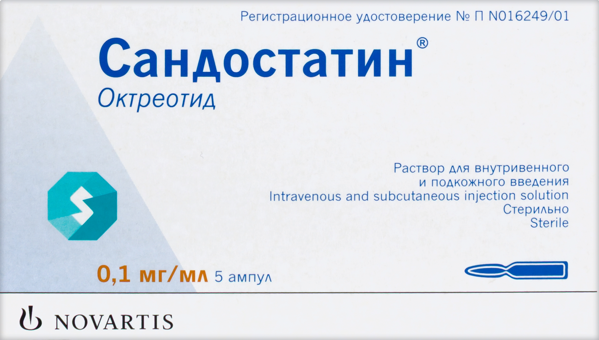 - ПоказанияАкромегалия Для контроля основных проявлений заболевания и уменьшения концентрации ГР и ИФР-1 в плазме крови при отсутствии достаточного эффекта от хирургического лечения или лучевой терапии, а также лечение пациентов с акромегалией при наличии противопоказаний к оперативному лечению, или при отказе от такового; лечение в период после лучевой терапии до развития ее полного эффекта. Секретирующие эндокринные опухоли ЖКТ и поджелудочной железы - для контроля симптомов: • Карциноидные опухоли с наличием карциноидного синдрома. • ВИПомы. • Глюкагономы. • Гастриномы/синдром Золлингера-Эллисона - как правило, в комбинации с ингибиторами протонной помпы и блокаторами Нг-гистаминовых рецепторов. • Инсулиномы (для контроля гипогликемии в предоперационном периоде, а также для поддерживающей терапии). • Соматолибериномы (опухоли, характеризующиеся гиперпродукцией рилизинг-фактора ГР). Препарат Сандостатин® не является противоопухолевым препаратом и его применение не может привести к излечению данной категории пациентов. • Контроль симптомов рефрактерной диареи, ассоциированной со СПИД. • Профилактика осложнений после операций на поджелудочной железе • Остановка кровотечения и профилактика рецидивов кровотечения из варикозно расширенных вен пищевода и желудка у пациентов с циррозом печени в комбинации со специфическими лечебными мероприятиями, например, эндоскопической склерозирующей терапией.