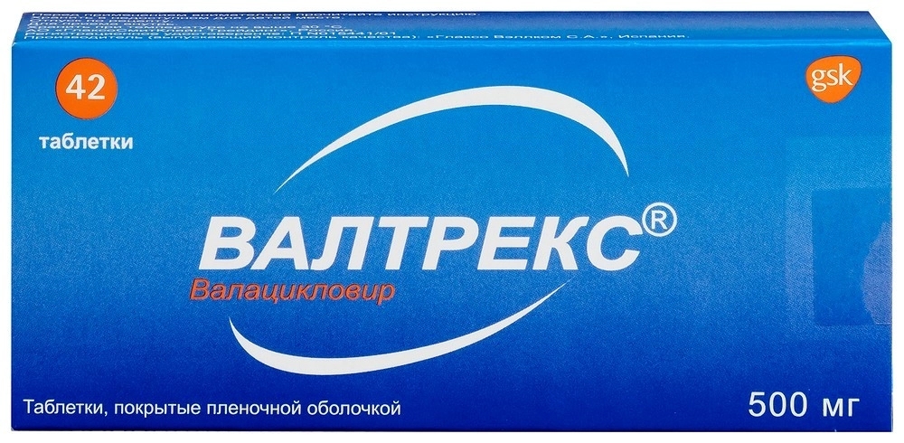 Валтрекс®Опоясывающий герпес и офтальмический опоясывающий герпес у иммунокомпетентных взрослых (лечение) не менее 50 1000 мг 3 раза/сут от 30 до 49 1000 мг 2 раза/сут от 10 до 29 1000 мг 1 раз/сут менее 10 500 мг 1 раз/сут ВПГ (лечение) Иммунокомпетентные взрослые и подростки в возрасте от 12 до 18 лет не менее 30 500 мг 2 раза/сут менее 30 500 мг 1 раз/сут Лабиальный герпес у иммунонекомпетентных взрослых и подростков в возрасте от 12 до 18 лет (лечение) не менее 50 2000 мг 2 раза/сут от 30 до 49 1000 мг 2 раза/сут от 10 до 29 500 мг 2 раза/сут менее 10 500 мг 1 раз/сут ВПГ (профилактика (супрессия)) Иммунокомпетентные взрослые и подростки в возрасте от 12 до 18 лет не менее 30 500 мг 1 раз/сут менее 30 500 мг 1 раз в двое суток Взрослые с иммунодефицитом не менее 30 500 мг 2 раз/сут менее 30 500 мг 1 раз/сут Профилактика инфекций, вызванных ЦМВ, у взрослых и подростков в возрасте от 12 до 18 лет не менее 75 2000 мг 4 раза/сут от 50 до 75 1500 мг 4 раза/сут от 25 до 50 1500 мг 3 раза/сут от 10 до 25 1500 мг 2 раза/сут менее 10 или у пациентов на гемодиализе 1500 мг 1 раз/сут Дополнительная информация для показания: лечение инфекций кожи и слизистых оболочек, вызванных ВПГ, включая впервые выявленный и рецидивирующий генитальный герпес (Herpes genitalis), а также лабиальный герпес (Herpes labialis)