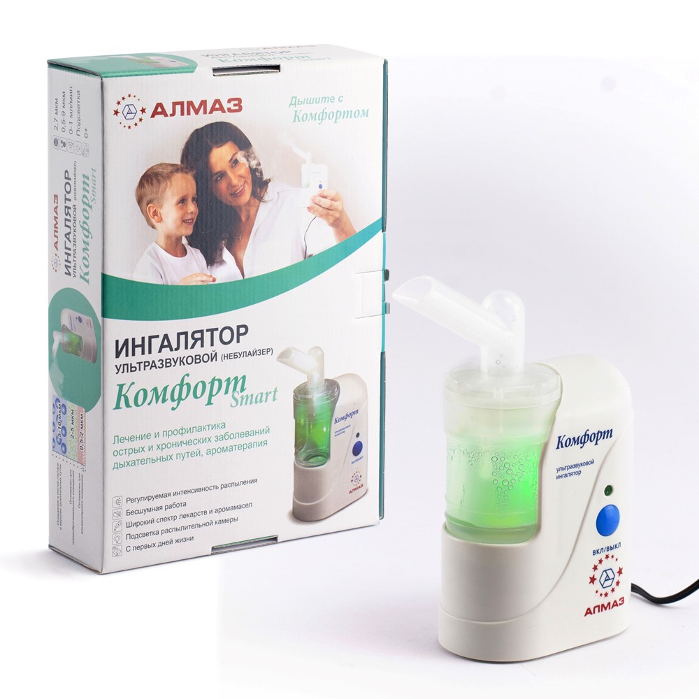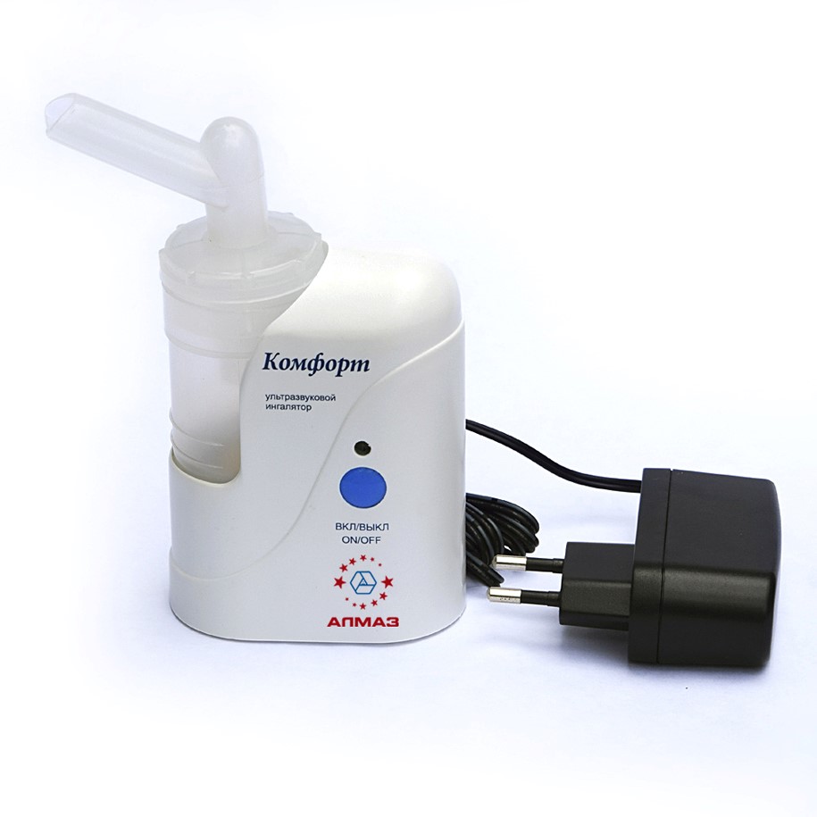 Включите ингалятор нажатием кнопки «вкл/выкл» (загорится индикатор питания). Не более чем через 3 секунды из штуцера начнет выходить аэрозоль.