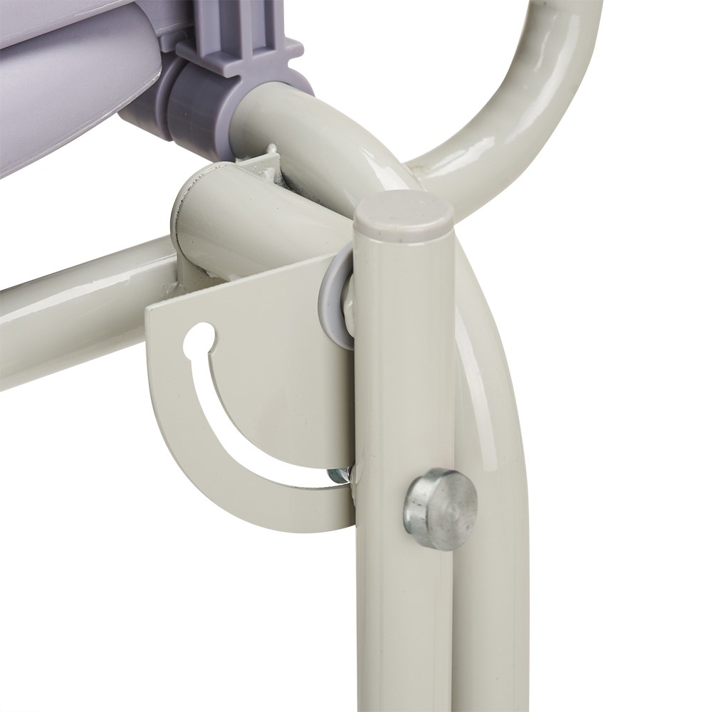 Регулировка ножек кресла по высоте позволяет приспособить стул под физиологические параметры пользователя. Конструкция стула предусматривает возможность размещения над унитазом.