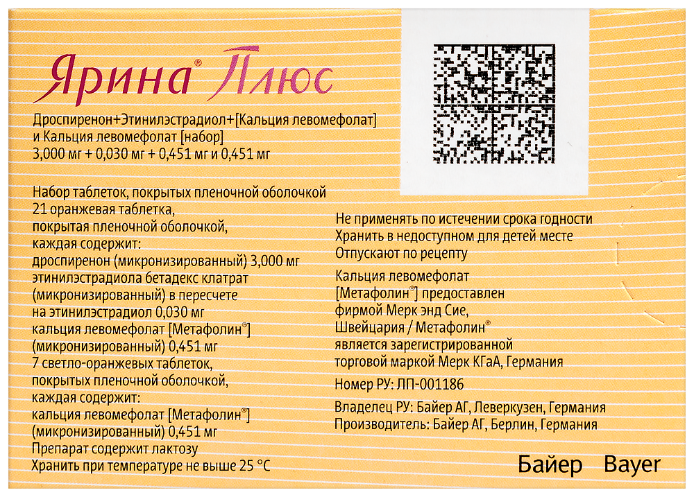 - препарат Ярина® Плюс содержит лактозу, поэтому противопоказан пациенткам с редкой наследственной непереносимостью лактозы, дефицитом лактазы или глюкозо-галактозной мальабсорбцией;