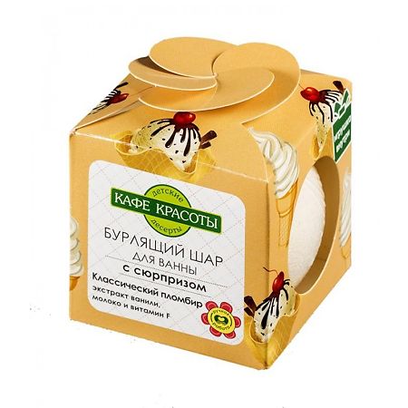 Мы приготовили настоящее лакомство - "Классический пломбир". Натуральный экстракт ванили, молоко и витамин F нежно ухаживают за кожей. "ДЕТСКИЕ ДЕСЕРТЫ" для ванны - весело и полезно! ИГРУШКА ВНУТРИ ШАРА!