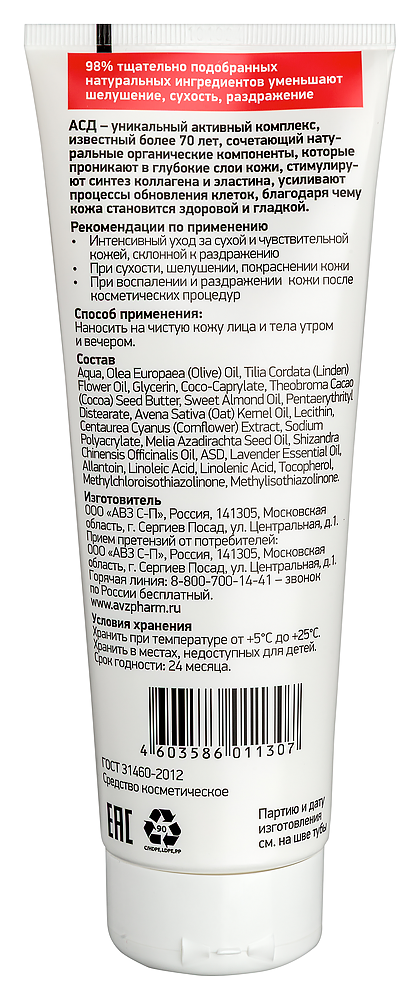 -Устраняет сухость, раздражение, покраснение и шелушение кожи
