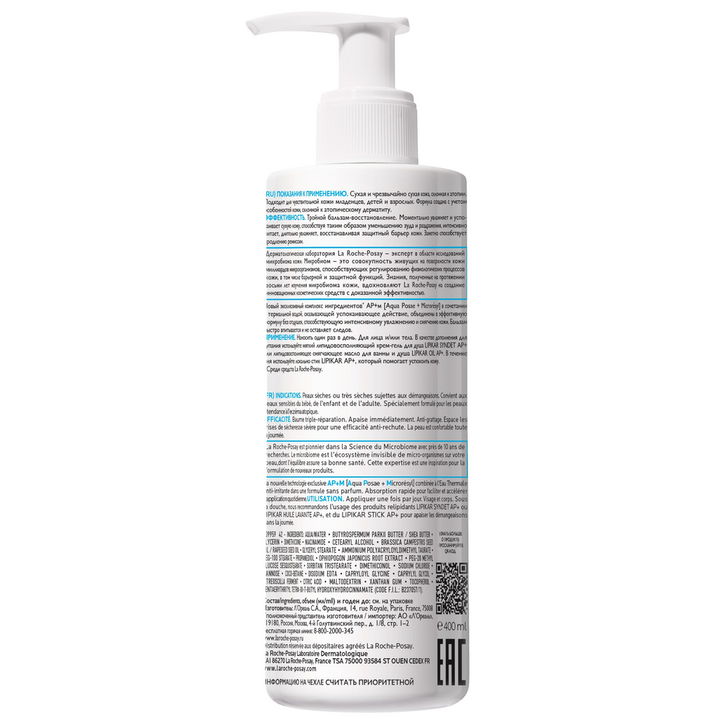 - Тройной бальзам-восстановление Lipikar AP+M моментально увлажняет и успокаивает сухую кожу, способствуя, таким образом, уменьшению зуда и раздражения, интенсивно питает, длительно увлажняет, восстанавливая защитный барьер кожи.