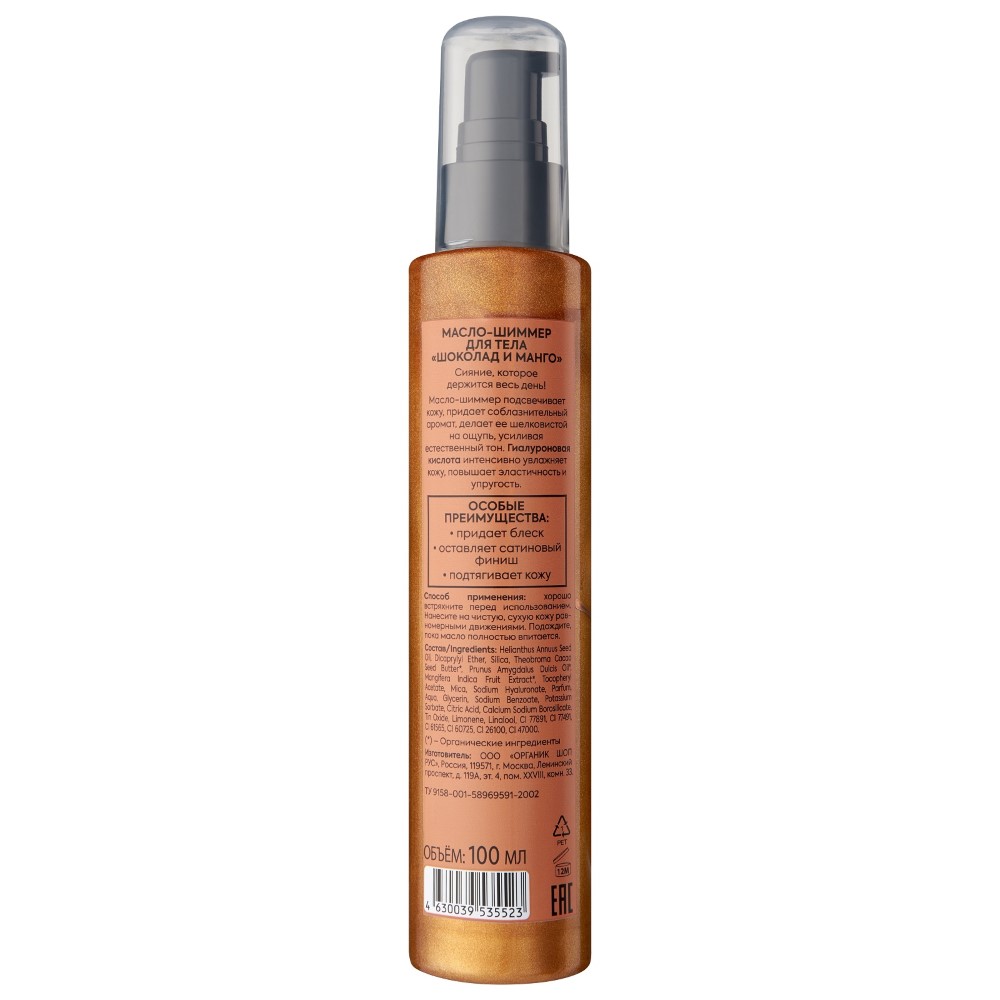 Organic Shop Shimmers Масло-шиммер для тела Шоколад и Манго, 100 мл