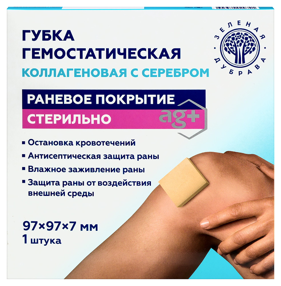 Основной компонент губки, нативный трёхспиральный коллаген - природный биополимер с полностью сохранённой естественной структурой. Коллаген запускает физиологические процессы свертывания крови, нормализует гемостаз и сокращает сроки заживления ран.