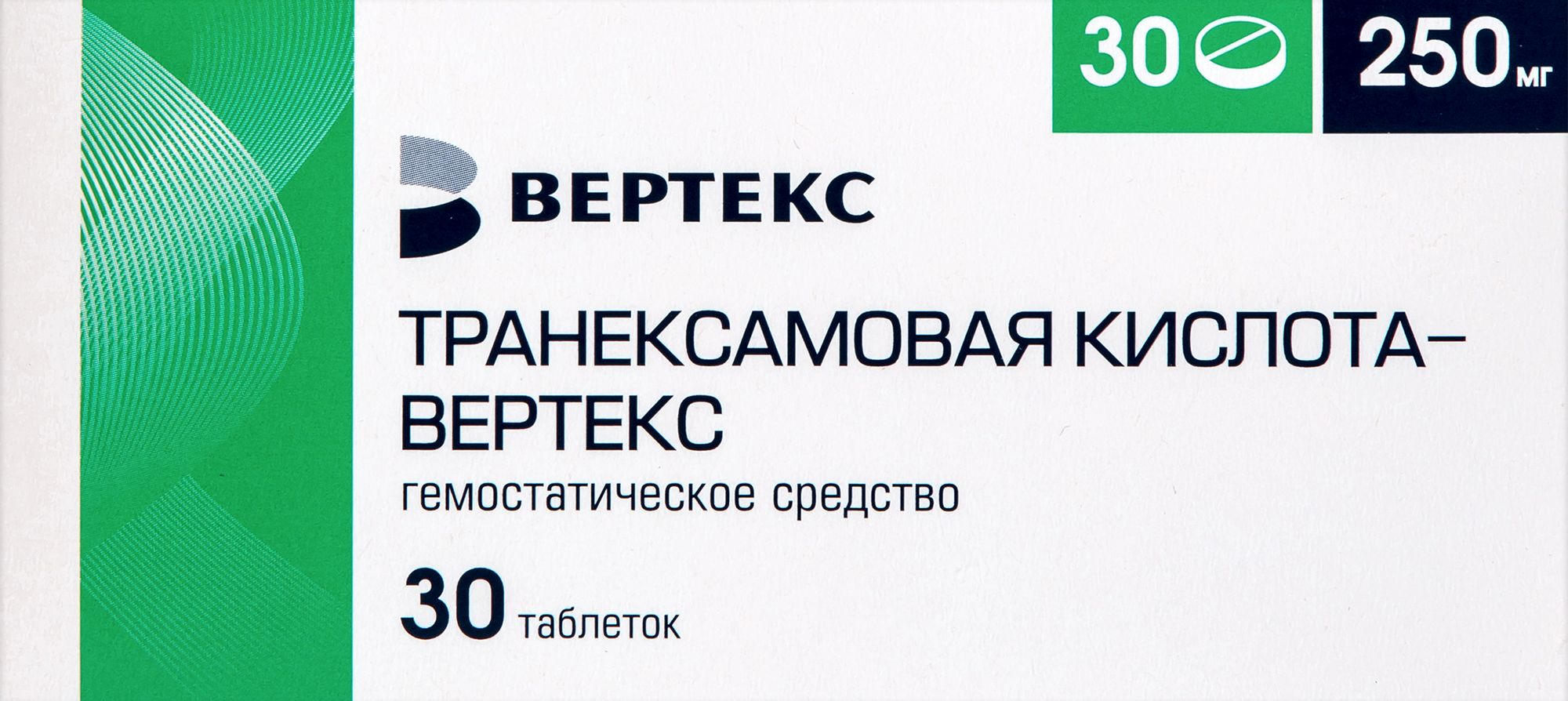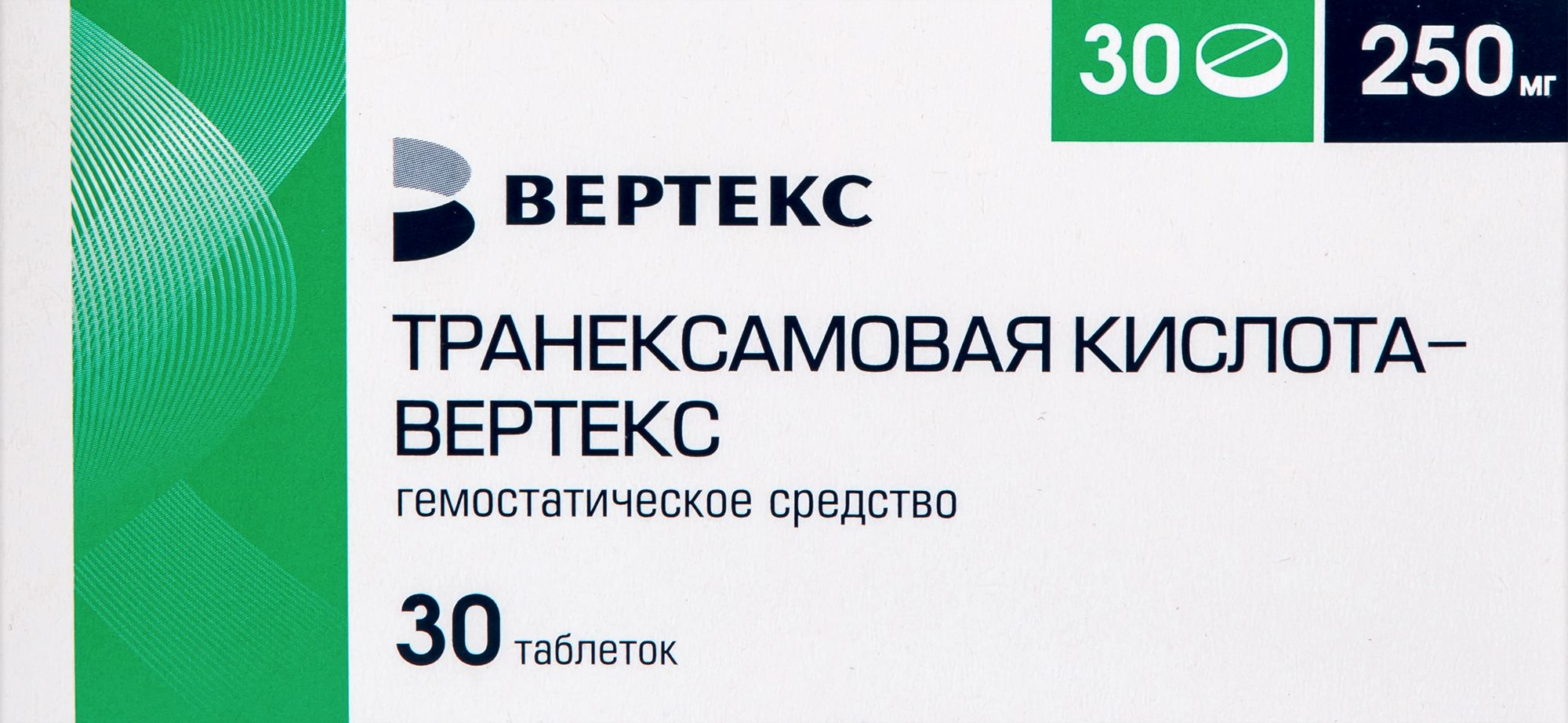 - Способ применения и дозыВнутрь, независимо от приема пищи. Краткосрочное лечение кровотечений, обусловленных повышенным фибринолизом: рекомендуемая стандартная доза транексамовой кислоты составляет 15-25 мг/кг массы тела, в среднем 1000-1500 мг 2-3 раза в сутки. При простатэктомии и оперативных вмешательствах на мочевом пузыре: 1000 мг за 6 ч до операции, затем по 1000 мг 3-4 раза в сутки до исчезновения макрогематурии. Не рекомендуется применение препарата более 2 недель после оперативного вмешательства. При меноррагии: рекомендуемая доза составляет 1000 мг 3 раза в сутки до прекращения меноррагии, но не более 4 суток. При профузном кровотечении доза препарата может быть увеличена, при этом общая суточная доза не должна превышать 4000 мг. Лечение транексамовой кислотой не следует начинать до возникновения менструального кровотечения. В клинических исследованиях транексамовая кислота не применялась более трех менструальных циклов подряд. При рецидивирующих носовых кровотечениях: по 1000 мг 3 раза в сутки в течение 7 дней. После операции конизации шейки матки: по 1500 мг 3 раза в сутки в течение 12 дней после операции. При травматической гифеме: по 1000-1500 мг 3 раза в сутки (целевая доза 25 мг/кг массы тела) в течение 7 дней. Пациенты с гемофилией: препарат назначают внутрь в дозе 25 мг/кг массы тела за 2 ч до экстракции зуба, и затем по 1000-1500 мг 3 раза в сутки в течение 6-8 дней. Следует одновременно назначить препараты факторов свертывания крови VIII или IX. При наследственном ангионевротическом отеке: по 1000-1500 мг 2-3 раза в день. Если пациент может предвидеть обострение заболевания, препарат можно принимать с перерывами в зависимости от наличия продромальных симптомов. В остальных случаях препарат следует принимать постоянно. Кровотечения при беременности: 250-500 мг 3-4 раза в сутки до полной остановки кровотечения. Средняя продолжительность курса лечения - 7 дней. Применение препарата у особых групп пациентов Пациенты с нарушением функции почек У пациентов с легким и умеренным нарушением выделительной функции почек необходима коррекция дозы и кратности приема транексамовой кислоты: Концентрация креатинина в сыворотке крови Скорость клубочковой фильтрации (СКФ) Доза транексамовой кислоты Кратность приема 120-249 мкмоль/л (1,36-2,82 мг/дл) 60-89 мл/мин/1,73м2 15 мг/кг массы тела 2 раза в сутки 250-500 мкмоль/л (2,83-5,66 мг/дл) 30-59 мл/мин/1,73м2 15 мг/кг массы тела 1 раз в сутки Пациенты с нарушением функции печени У пациентов с нарушением функции печени коррекция дозы не требуется. Пациенты пожилого возраста У пациентов пожилого возраста при отсутствии почечной недостаточности коррекция дозы не требуется. Дети Данные в отношении эффективности и безопасности применения препаратов транексамовой кислоты у детей ограничены. У детей транексамовая кислота назначается из расчета 25 мг/кг массы тела 2-3 раза в сутки. Действия при пропуске приема очередной дозы При пропуске приема одной дозы необходимо принять следующую дозу препарата в установленное время. Не следует принимать удвоенную дозу препарата после пропуска приема очередной дозы.