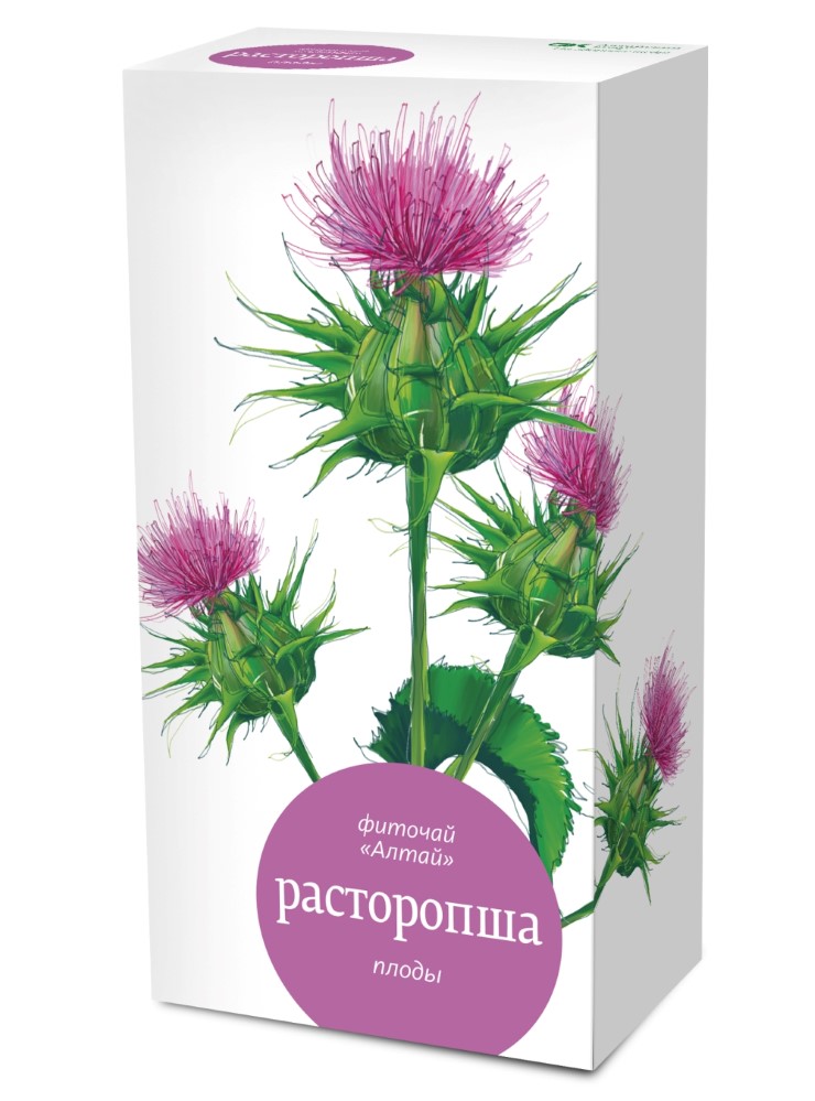 Фиточай «Алтай» Расторопша плоды рекомендуется при гепатите, циррозе, желчно- каменной болезни, при различных отравлениях, способствует улучшению обмена веществ всего организма.