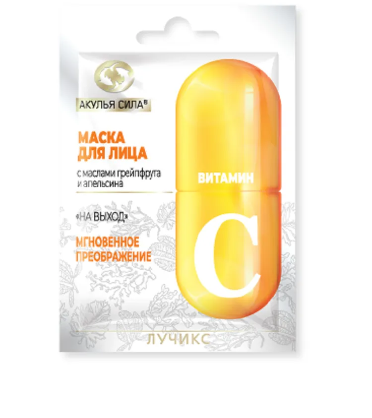 - АКУЛЬЯ СИЛА МАСКА ДЛЯ ЛИЦА ВИТАМИН С - витамин С, масло грейпфрута и апельсина - мгновенное преображение