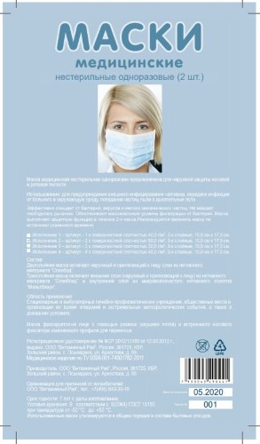 Маска медицинская нестерильная одноразовая предназначена для наружной защиты носовой и ротовой полости.
