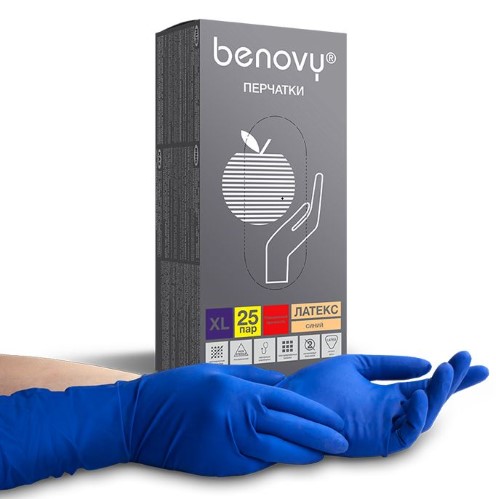 Перчатки BENOVY Latex High Risk обладают повышенной прочностью, отличаются увеличенной толщиной стенок, текстурированной поверхностью и повышенным сопротивлением к повреждению.