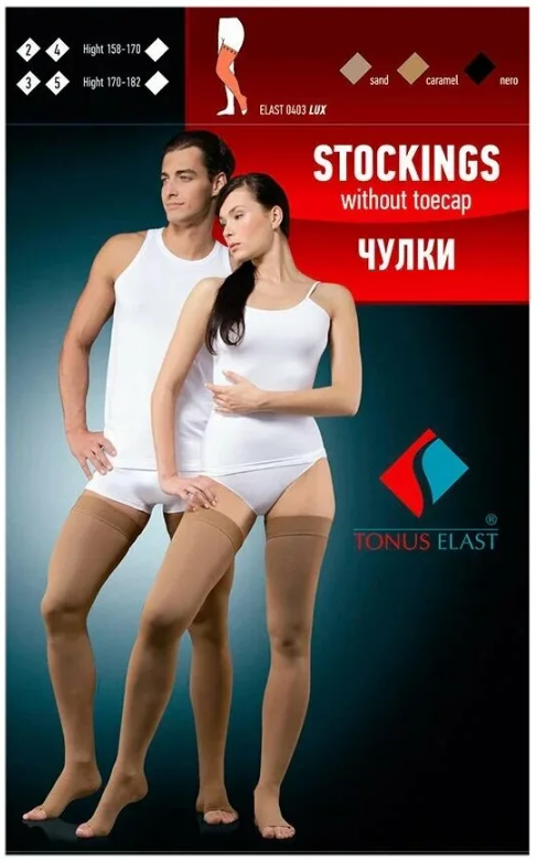 TONUS ELAST LUX ЧУЛКИ МЕДИЦИНСКИЕ ЭЛАСТИЧНЫЕ КОМПРЕССИОННЫЕ ЛЕЧЕБНЫЕ - Артикул ELAST 0403 LUX - без мыска, универсальные (унисекс)