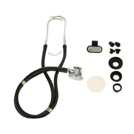 Благодаря пяти вариантам рабочей комплектации: большая или малая мембрана (диаметр 47 и 32 мм), воронка для взрослых, педиатрическая или неонатальная воронка (диаметр 33, 27 и 19 мм), данный прибор заменяет собой 5 стетоскопов различного назначения.
