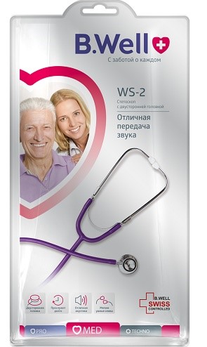 B.Well WS-2 стетоскоп с многофункциональной двусторонней головкой, идеальный для профессионального применения. Благодаря правильной форме головки, высокочувствительной мембране, плотной литой звукопроводящей трубке, исключающей помехи, стетоскопы B.Well обладают отличной акустикой. Для комфорта пациента купол стетоскопа имеет пластиковое кольцо, которое исключает контакт холодного материала с кожей. Мягкие ушные оливы и хромированные ушные трубки будут удобны для врача.