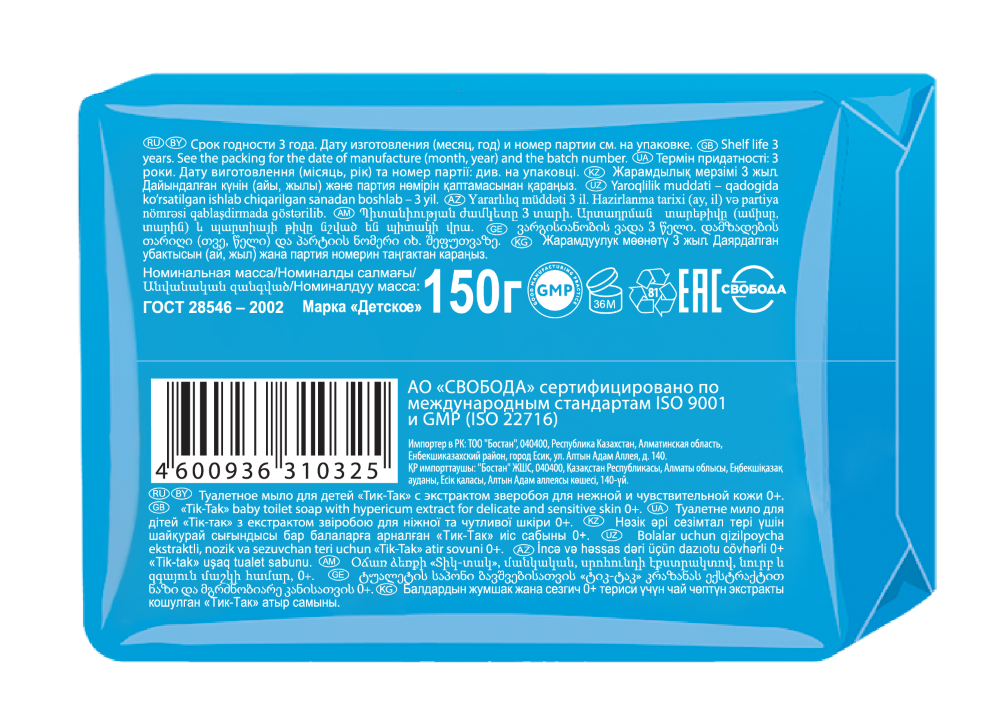 Нежное детское мыло Тик-Так бережно очищает чувствительную кожу ребенка.