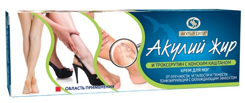 АКУЛИЙ ЖИР АКУЛЬЯ СИЛА ТРОКСЕРУТИН С КОНСКИМ КАШТАНОМ КРЕМ ДЛЯ НОГ ПРИ ВАРИКОЗЕ содержит натуральные растительные компоненты и эфирные масла.