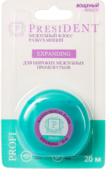 Разработан специально для широких межзубных промежутков. При соприкосновении со слюной нить разбухает (эффект губки).