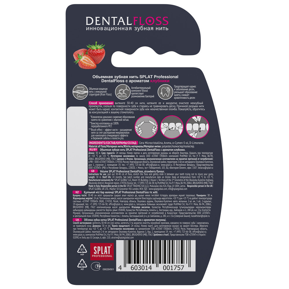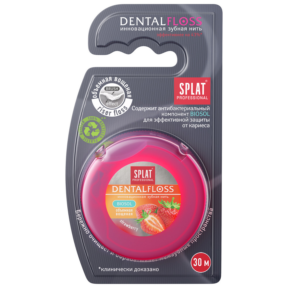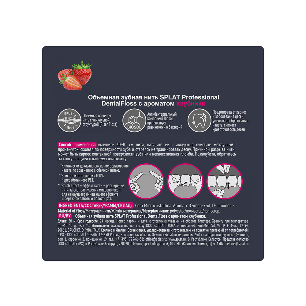 Антибактериальная объемная зубная нить SPLAT Professional Dental Floss с ароматом КЛУБНИКИ, 30 метров.