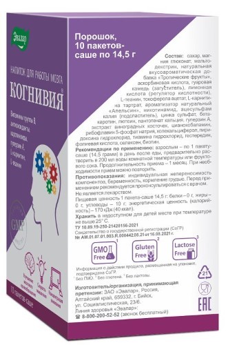 Попробуйте напиток для работы мозга КОГНИВИЯ от компании «Эвалар». Это специальный комплекс для оптимизации работы и здоровья когнитивной системы, который включает: