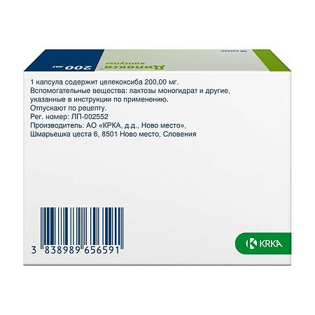 Симптоматическое лечение остеоартроза: рекомендованная доза составляет 200 мг в сутки в 1 или 2 приема.