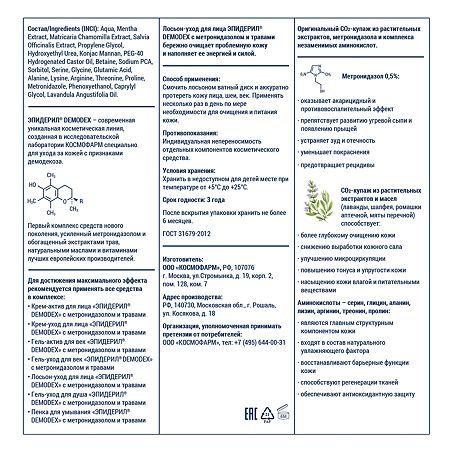 Рекомендован при акне, угревой сыпи, комедонах, розацеа, демодекозе, повышенной сальности кожи.