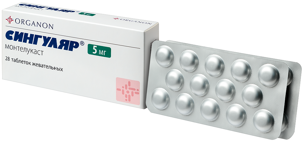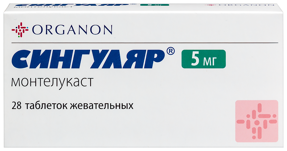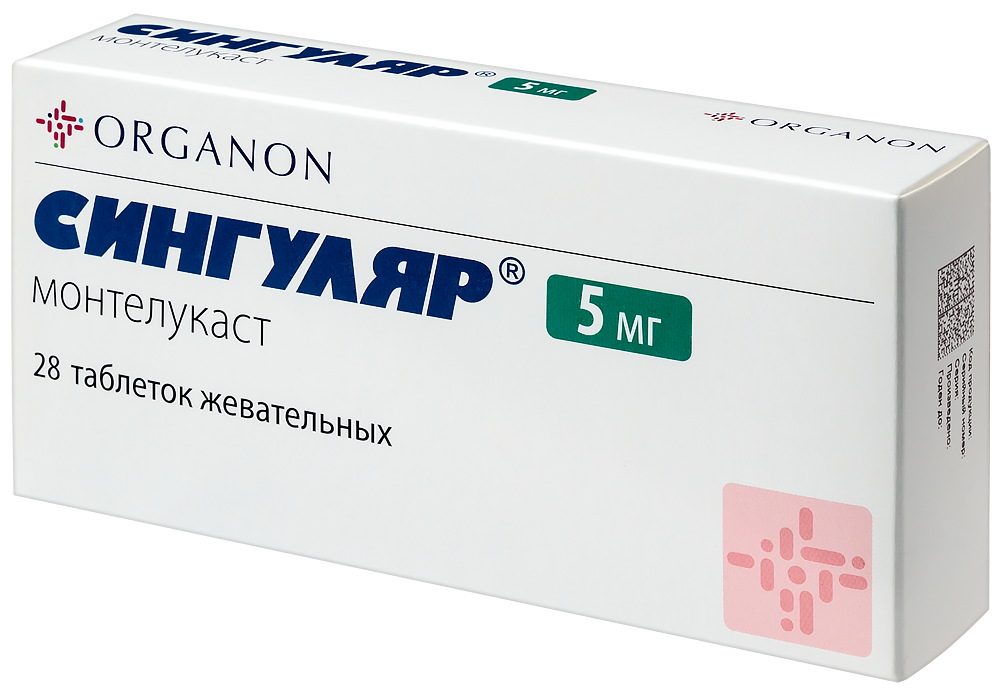- Способ применения и дозыВнутрь 1 раз в сутки независимо от приема пищи. Для лечения бронхиальной астмы препарат Сингуляр® следует принимать вечером. При лечении аллергических ринитов доза может приниматься в любое время суток по желанию пациента. Пациенты, страдающие бронхиальной астмой и аллергическими ринитами, должны принимать одну таблетку препарата Сингуляр® 1 раз в сутки вечером. Дети в возрасте от 6 до 14 лет Доза для детей 6-14 лет составляет одну таблетку жевательную 5 мг в сутки. Подбора дозы для этой возрастной группы не требуется. Общие рекомендации Терапевтическое действие препарата Сингуляр® на показатели, отражающие течение бронхиальной астмы, развивается в течение первого дня. Пациенту следует продолжать принимать Сингуляр® как в период достижения контроля за симптомами бронхиальной астмы, так и в периоды обострения бронхиальной астмы. Для пожилых пациентов, пациентов с почечной недостаточностью, а также пациентов с легкими или среднетяжелыми нарушениями функции печени, а также в зависимости от пола специального подбора дозы не требуется. Назначение препарата Сингуляр® одновременно с другими видами лечения бронхиальной астмы Препарат Сингуляр® можно добавлять к лечению пациента бронходилататорами и ингаляционными глюкокортикостероидами (см. раздел "Взаимодействие с другими лекарственными препаратами").